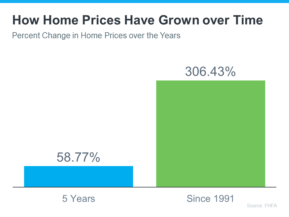 While home price growth varies by state and local area, the national average shows the typical homeowner who’s been in their house for five years saw it increase in value by nearly 60%. And the average homeowner who’s owned their home since 1991 saw it more than triple in value over that time.